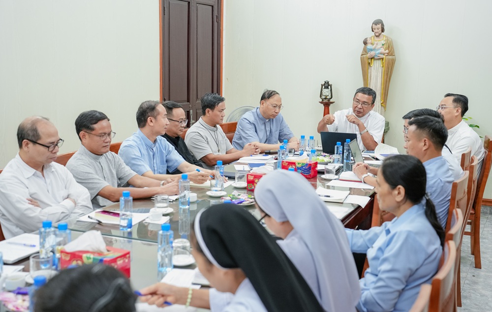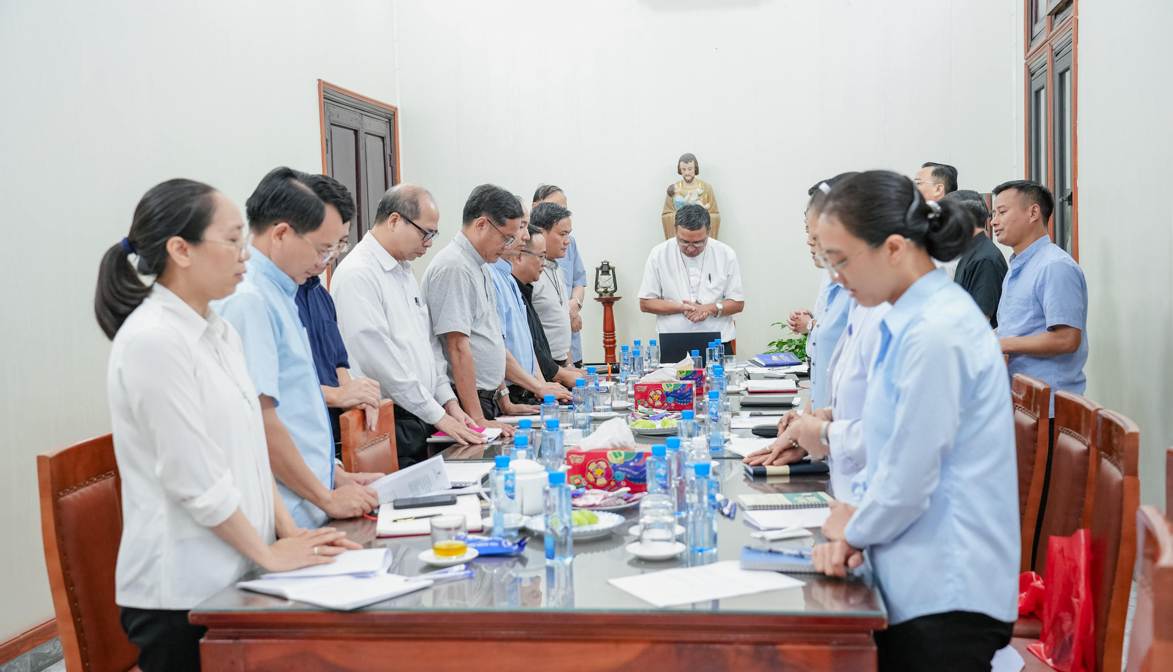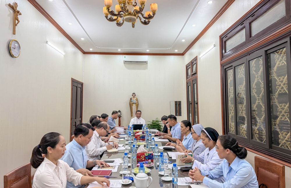 Mở đầu chương trình, Đức cha Vinh Sơn cùng quý cha và quý sơ trong Ban Hiệp hành sốt sắng dâng lời cầu nguyện xin Chúa Thánh Thần soi sáng. Tiếp đó, từ những văn kiện và định hướng của Hội Thánh, Đức cha đã đúc kết, gợi ý để toàn ban cùng suy tư và thảo luận.