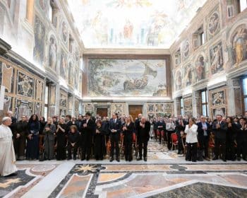 Sáng ngày 15/12/2025, Đức Thánh Cha Lêô XIV đã tiếp kiến các phái đoàn đã đóng góp Hang đá và Cây thông Giáng Sinh trang trí Quảng trường Thánh Phêrô, cũng như cảnh Giáng Sinh