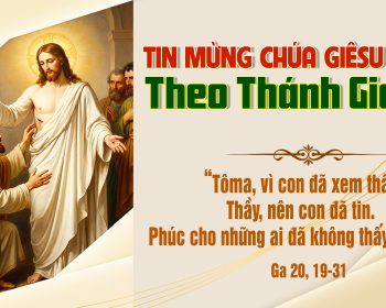 Vào buổi chiều ngày thứ nhất trong tuần, những cửa nhà các môn đệ họp đều đóng kín, vì sợ người Do-thái, Chúa Giêsu hiện đến, đứng giữa các ông và nói rằng: “Bình an