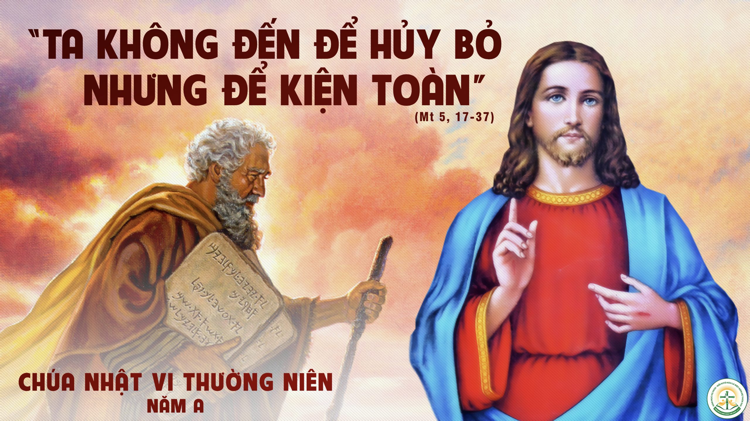 Khi ấy, Chúa Giêsu phán cùng các môn đệ rằng: “Các con đừng tưởng Ta đến để hủy bỏ lề luật hay các tiên tri; Ta không đến để hủy bỏ, nhưng để kiện toàn. Vì Ta bảo thật các con: cho dù trời đất có qua đi, thì một chấm một phẩy trong bộ luật cũng không bỏ sót, cho đến khi mọi sự hoàn thành. Bởi vậy, ai hủy bỏ một trong những điều luật nhỏ mọn nhất, và dạy người khác làm như vậy, sẽ kể là người nhỏ nhất trong Nước Trời; trái lại, ai giữ và dạy người ta giữ những điều đó, sẽ được kể là người cao cả trong Nước Trời. Nếu các con không công chính hơn các luật sĩ và biệt phái, thì các con chẳng được vào Nước Trời đâu. Các con đã nghe dạy người xưa rằng “không được giết người; ai giết người, sẽ bị luận phạt nơi toà án”. Còn Ta, Ta bảo các con “Bất cứ ai phẫn nộ với anh em mình, thì sẽ bị tòa án luận phạt. Ai bảo anh em là ngốc, thì bị phạt trước công nghị.” […].