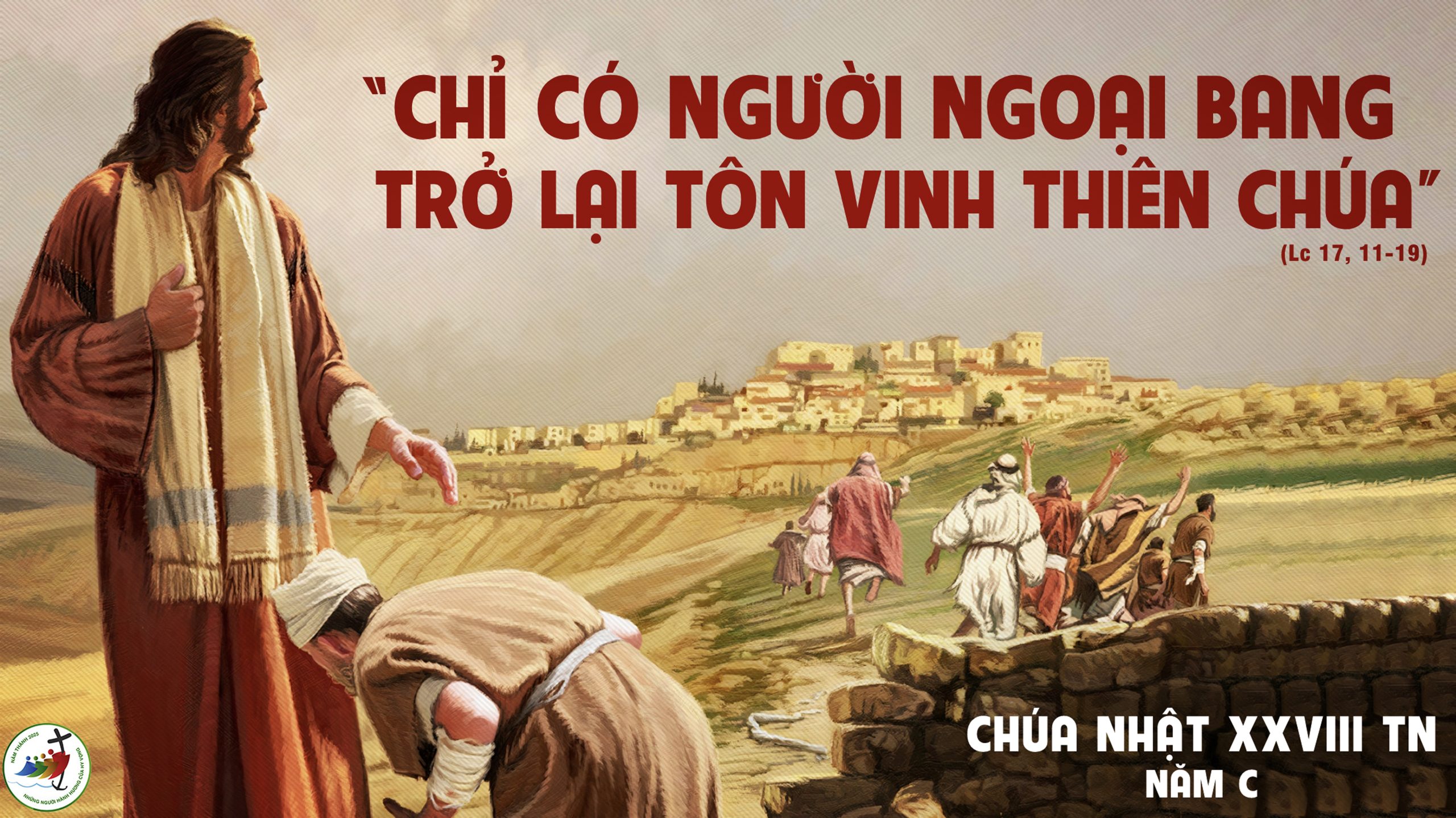 Khi Chúa Giêsu đi lên Giêrusalem, Người đi qua biên giới Samaria và Galilêa. Khi Người vào một làng kia, thì gặp mười người phong cùi đang đứng ở đàng xa, họ cất tiếng thưa rằng: “Lạy Thầy Giêsu, xin thương xót chúng tôi”. Thấy họ, Người bảo họ rằng: “Các ngươi hãy đi trình diện với các tư tế”. Trong lúc họ đi đường, họ được lành sạch. Một người trong bọn họ thấy mình được lành sạch, liền quay trở lại, lớn tiếng ngợi khen Thiên Chúa, rồi đến sấp mình dưới chân Chúa Giêsu và tạ ơn Người, mà người ấy lại là người xứ Samaria. Nhưng Chúa Giêsu phán rằng: “Chớ thì không phải cả mười người được lành sạch sao. Còn chín người kia đâu. Không thấy ai trở lại tôn vinh Thiên Chúa, mà chỉ có người ngoại bang này”. Rồi Người bảo kẻ ấy rằng: “Ngươi hãy đứng dậy mà về, vì lòng tin của ngươi đã cứu chữa người”.