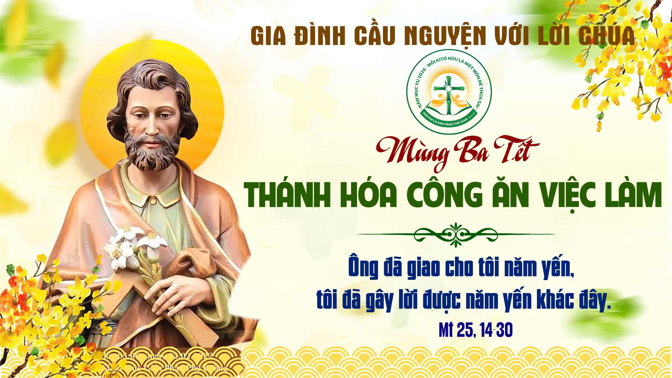 Mồng Ba Tết là ngày mà Giáo Hội Việt Nam muốn dành riêng để thánh hóa công ăn việc làm. Trong bài Tin Mừng hôm nay, ta có thể hiểu ông chủ ở đây chính là Thiên Chúa và những đầy tớ là mỗi người trong chúng ta. Khi được sinh ra trên đời, Thiên Chúa đã trao ban cho mỗi người một khả năng riêng, để mỗi người phát triển hay sinh lợi.Rồi sẽ đến lúc Thiên Chúa tính sổ với mỗi người và Người sẽ ban thưởng hạnh phúc đời đời cho những ai đã cố gắng làm sinh lợi từ những ân huệ Chúa ban.