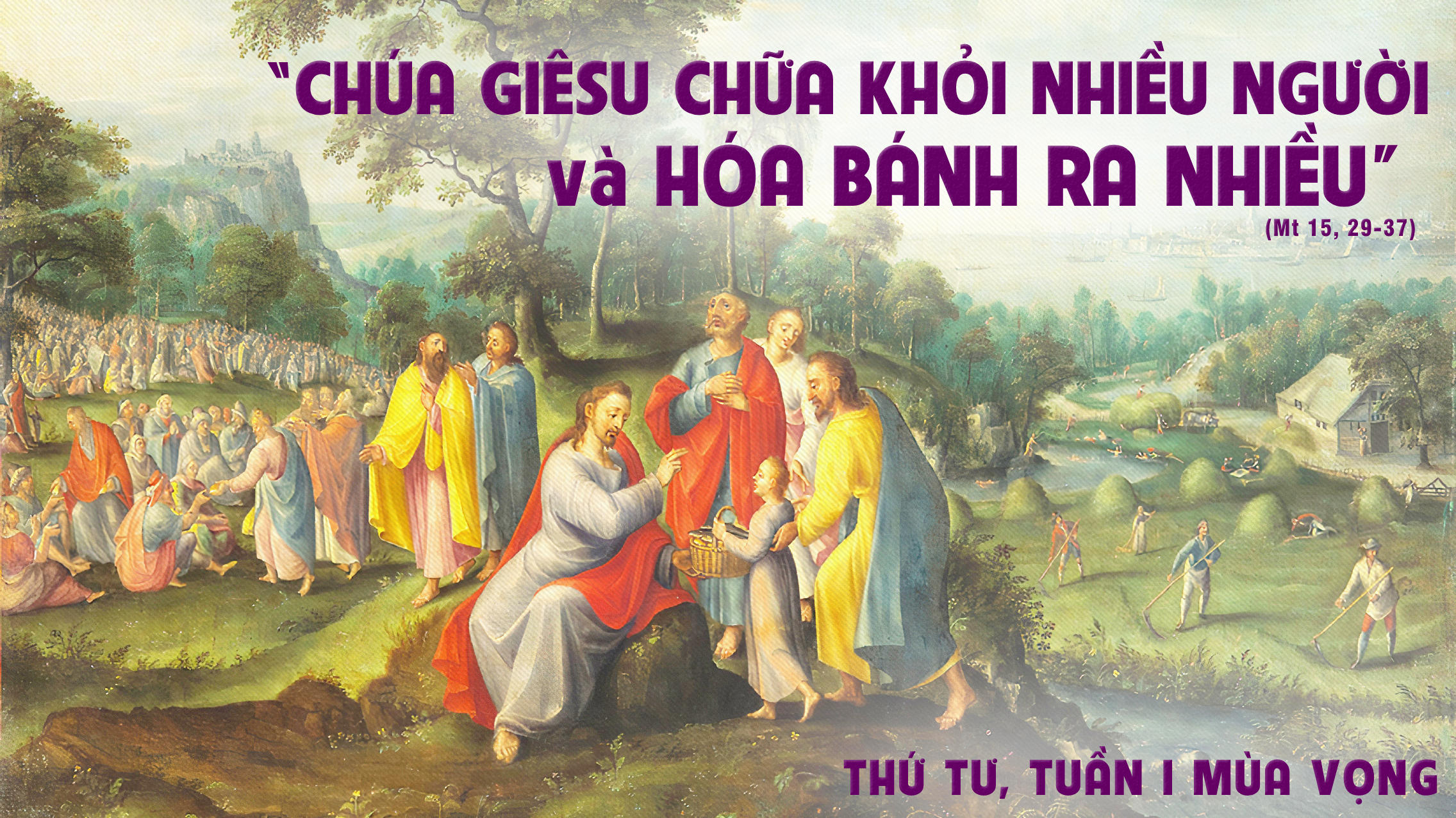 […] Khi ấy, Chúa Giêsu kêu gọi các môn đệ mà phán: “Ta thương xót đoàn lũ này, vì đã ba ngày, họ ở lại với Ta, nhưng không có gì ăn. Ta không muốn cho họ về bụng đói, sợ họ té xỉu dọc đàng.” Các môn đệ thua Người: “Chúng tôi lấy đâu cho đủ bánh trong hoang địa này mà cho ngần ấy dân chúng ăn no?” Chúa Giêsu nói với họ: “Các ngươi có bao nhiêu chiếc bánh?” Họ thưa: “Có bảy chiếc và ít con cá nhỏ.” Người truyền dân chúng ngồi xuống đất. Người cầm lấy bảy chiếc bánh và mấy con cá, tạ ơn, bẻ ra và trao cho các môn đệ, các môn đệ đem cho dân chúng. Tất cả đều ăn no và mảnh vụn còn lại, người ta thu lượm được bảy thúng đầy.