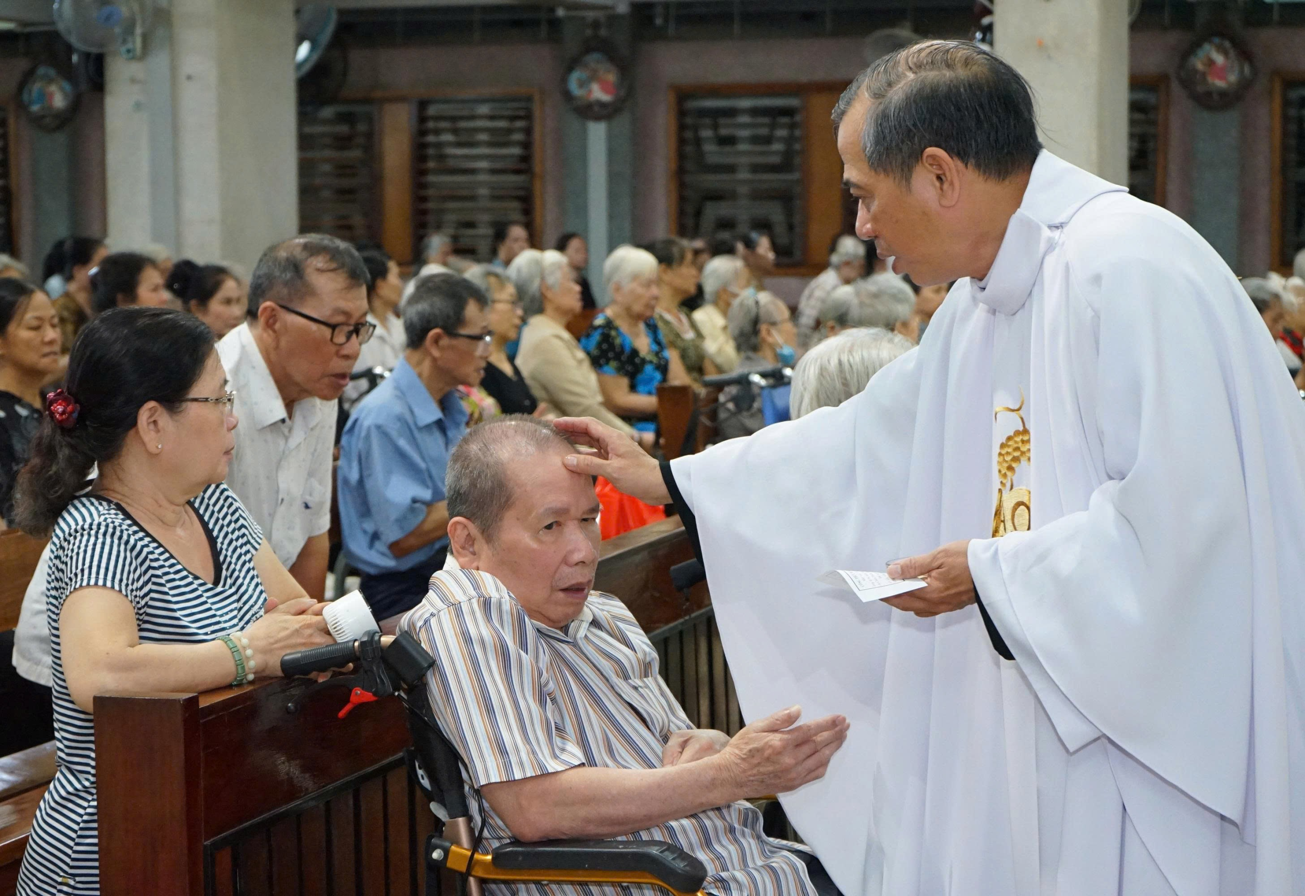 Sau bài giảng, quý cha cử hành nghi thức xức dầu bệnh nhân trong bầu khí trang nghiêm và cảm động. Những giọt dầu thánh trên trán và lòng bàn tay như dấu chỉ ơn chữa lành và an ủi của Thiên Chúa, giúp người đau yếu được thêm sức mạnh và niềm hy vọng mới.