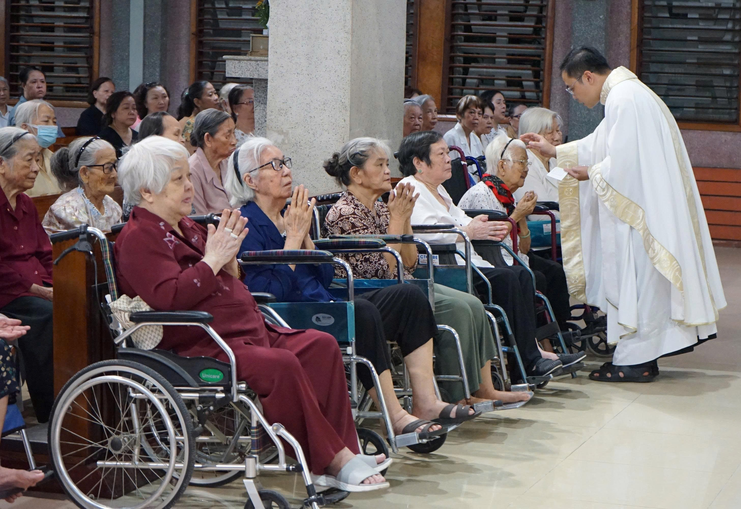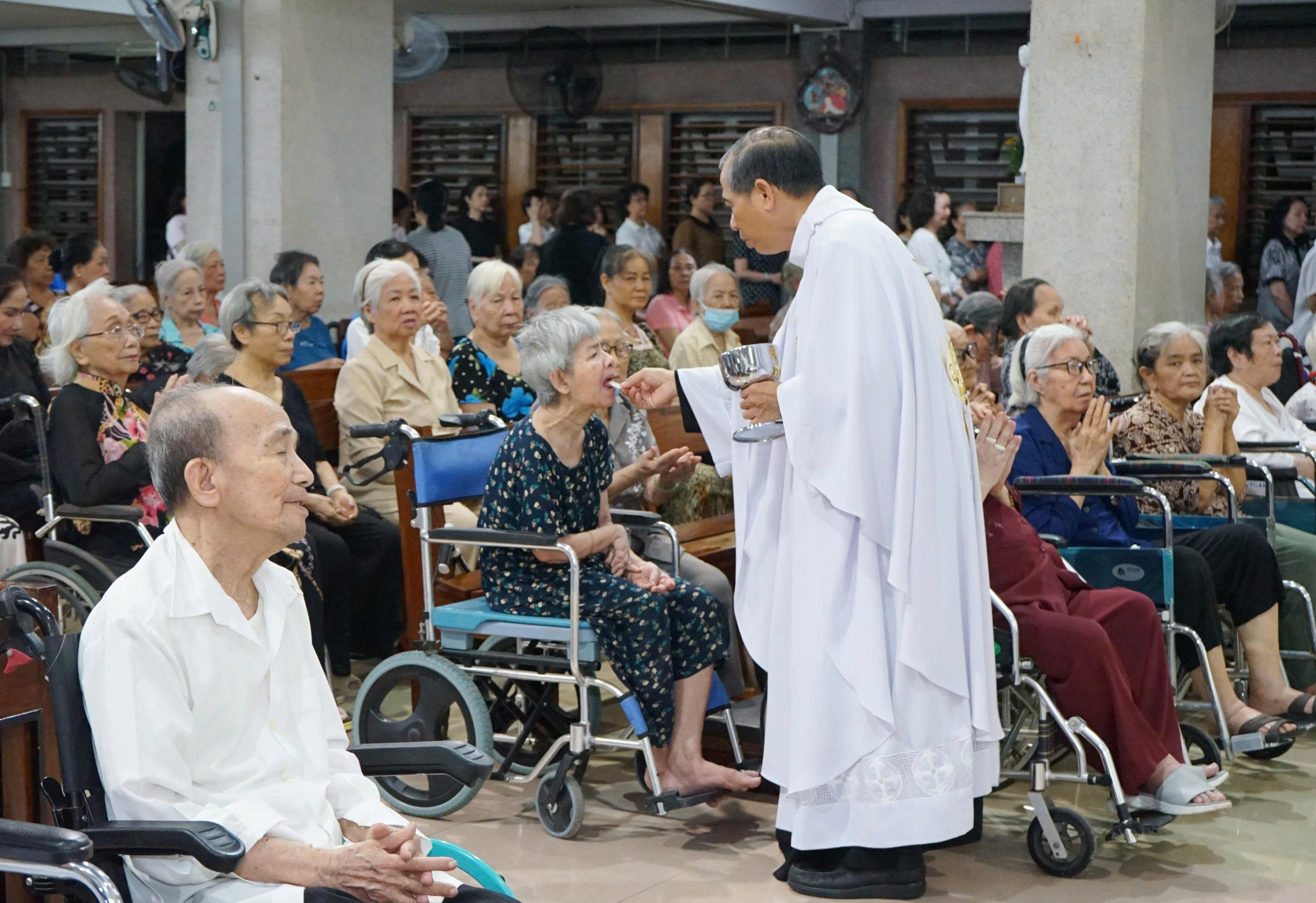 Sau đó, quý cha đã đến tận chỗ của từng bệnh nhân để trao Mình Thánh Chúa, giúp họ được kết hiệp trọn vẹn với Chúa Giêsu trong Bí tích Thánh Thể.