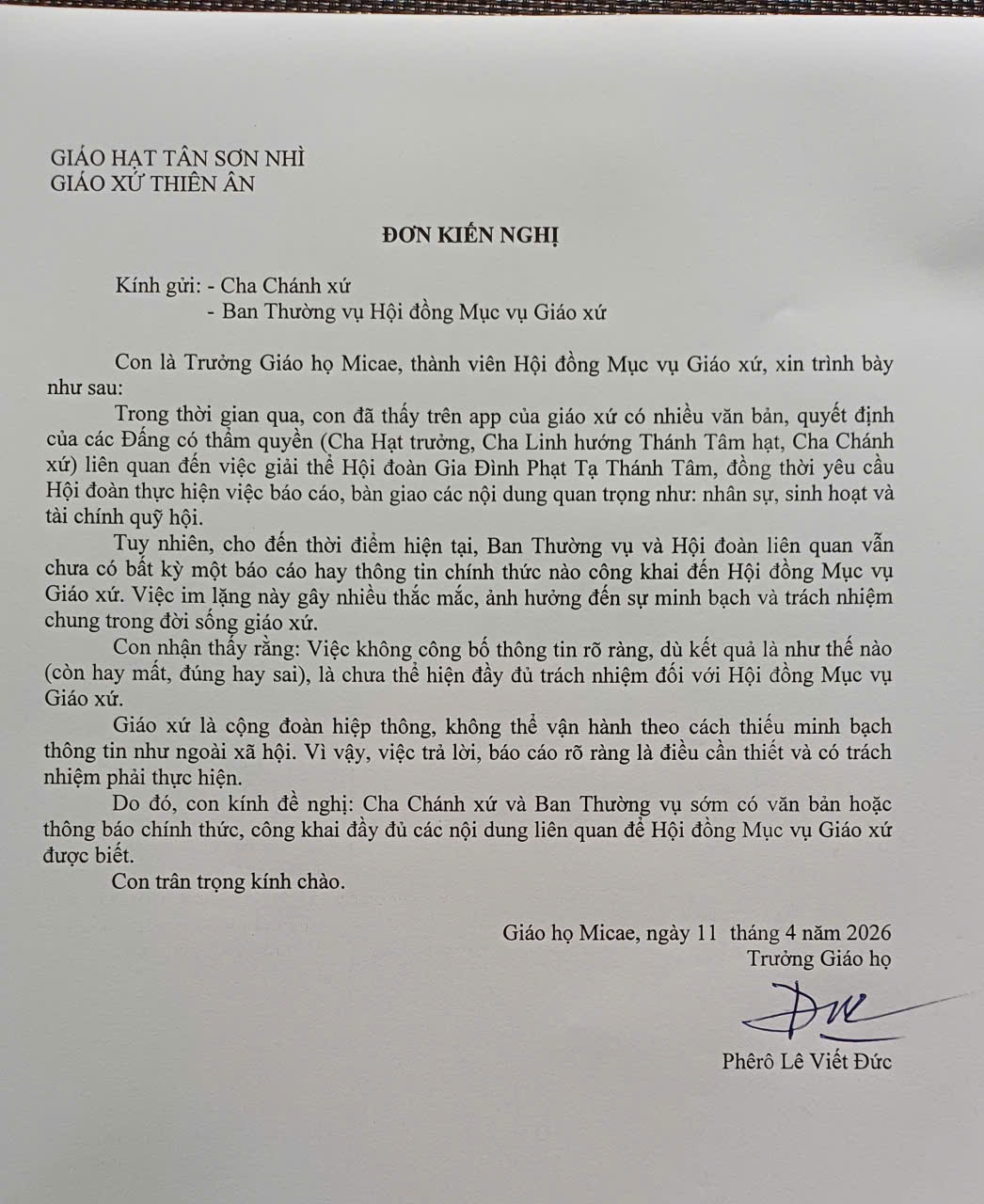 Khi những căng thẳng này xảy ra, Giáo hội luôn mời gọi các thành phần dân Chúa giải quyết dựa trên sự thật, sự minh bạch và đức ái huynh đệ.