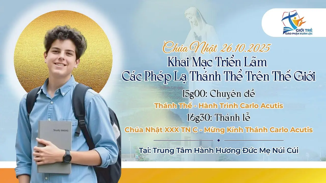 WGPXL (26/10/2025) – Vào chiều Chúa nhật, ngày 26/10/2025, lúc 15g00, tại Trung tâm Hành hương Đức Mẹ Núi Cúi, thuộc giáo phận Xuân Lộc đã diễn ra buổi Khai mạc triển lãm “Các phép lạ Thánh Thể trên thế giới” với sự tham dự rất đông đảo của quý Cha, quý tu sĩ và cộng đoàn dân Chúa, cùng các bạn trẻ, các giáo lý viên trong giáo phận đã quy tụ tại Nhà nguyện Đức Mẹ.