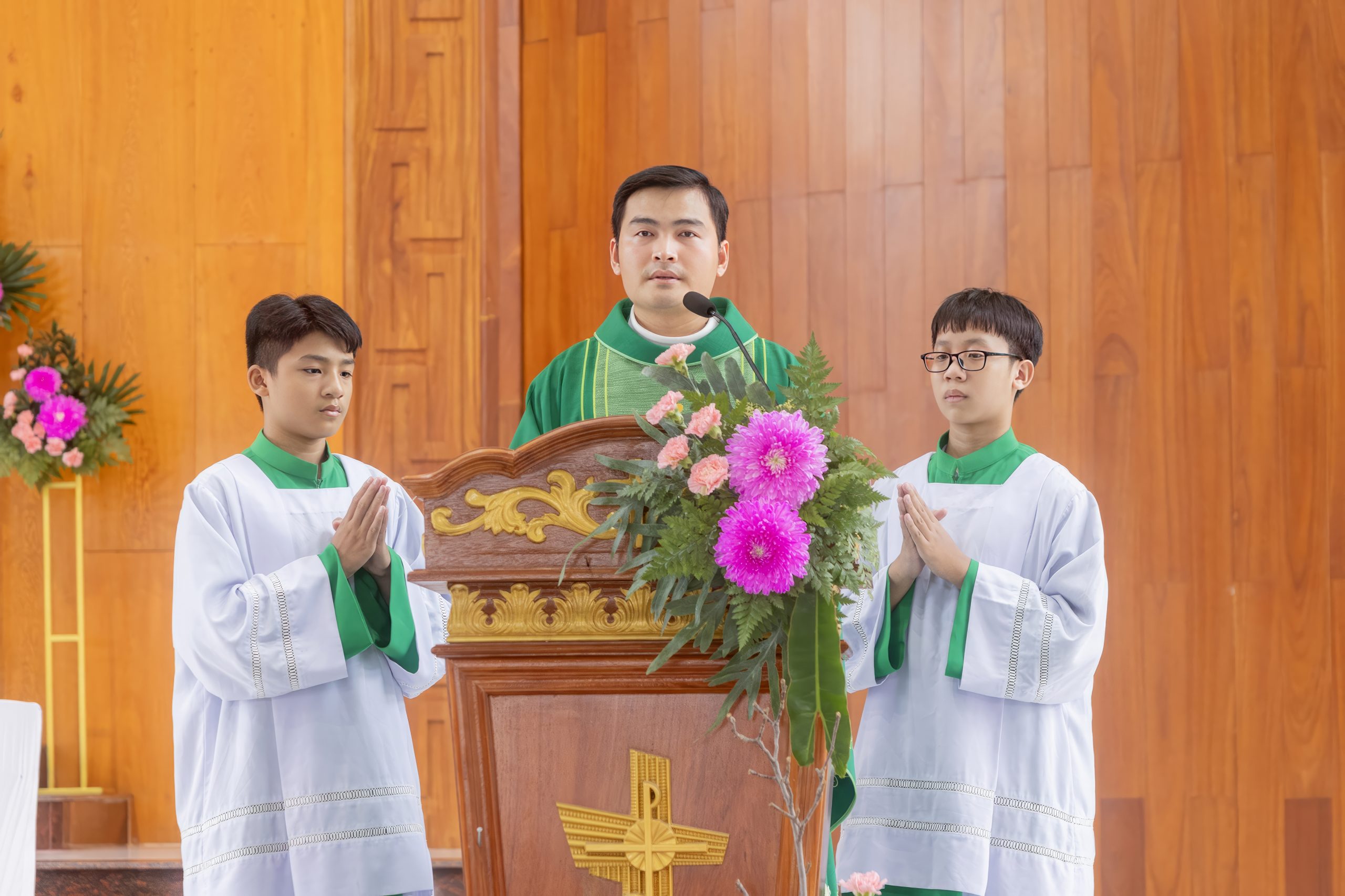 Các em thiếu nhi: luôn chăm ngoan, siêng năng và lớn lên trong Đức Tin – Đức Cậy – Đức Mến.