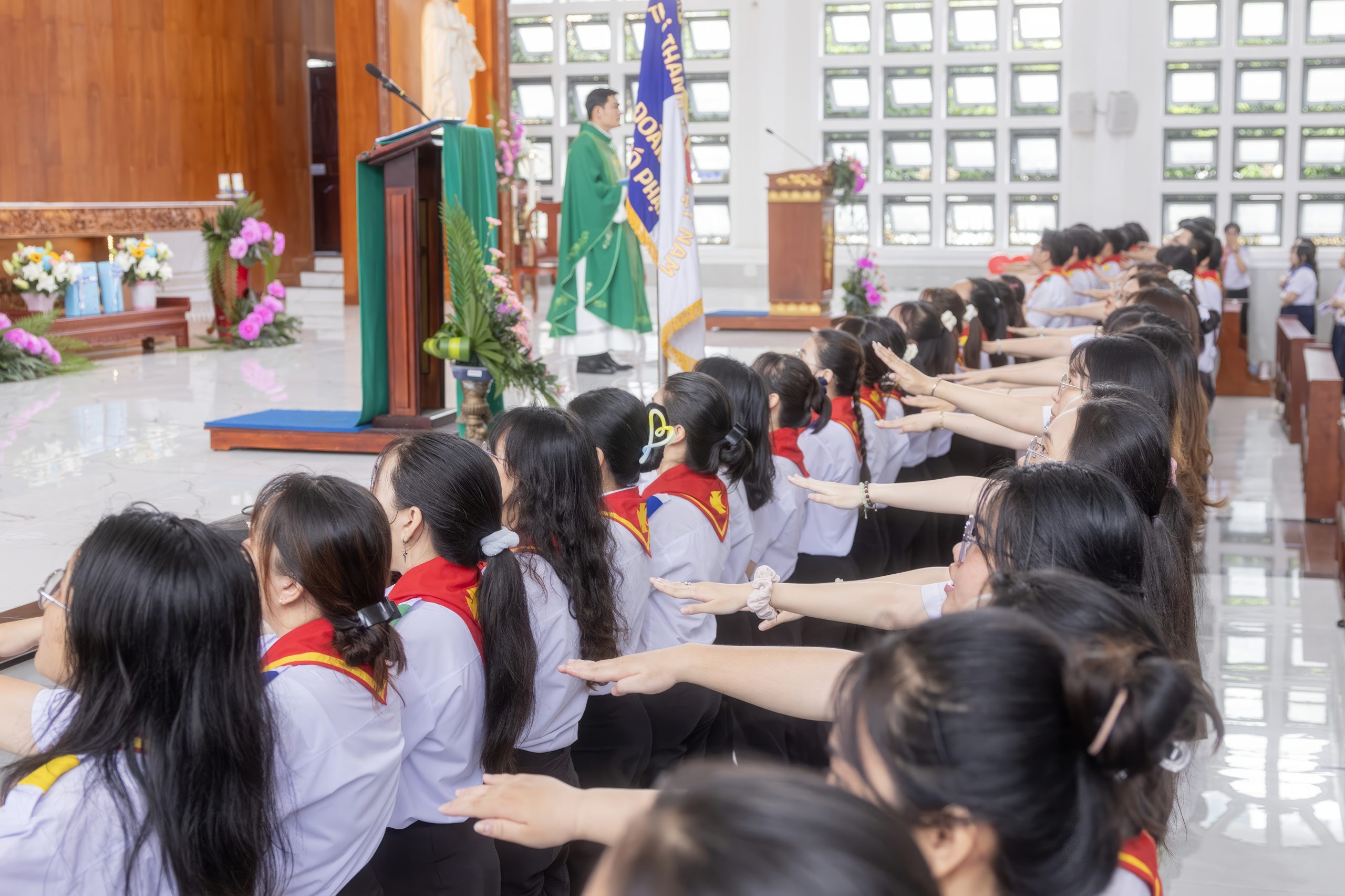✨ “Chúng con xin hứa sẽ chăm ngoan học giáo lý, siêng năng tham dự Thánh lễ, và sống yêu thương – hiệp nhất trong tinh thần Thiếu Nhi Thánh Thể.”