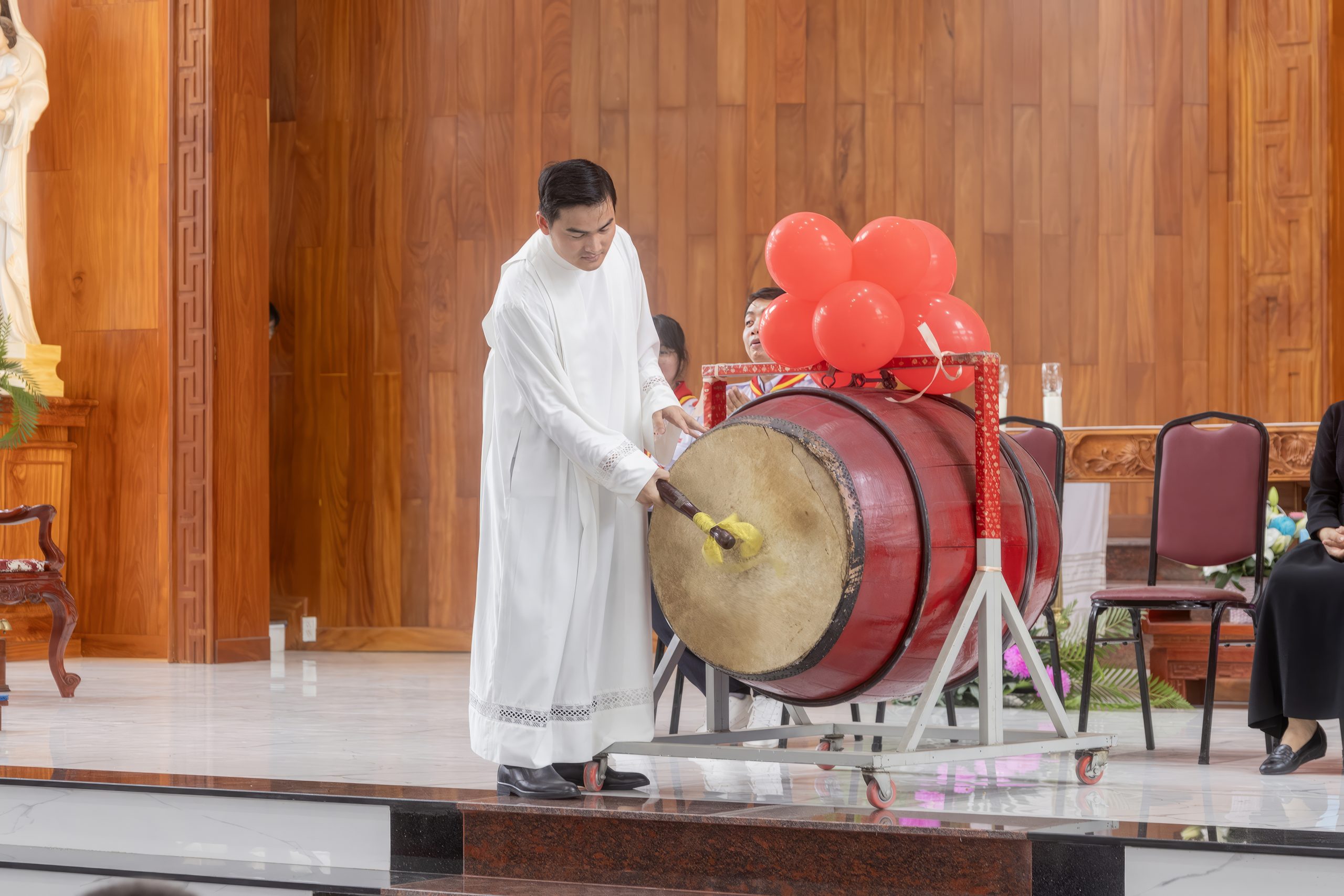 Tiếng trống khai giảng vang lên rộn ràng, mở đầu buổi lễ trong niềm háo hức của các em.