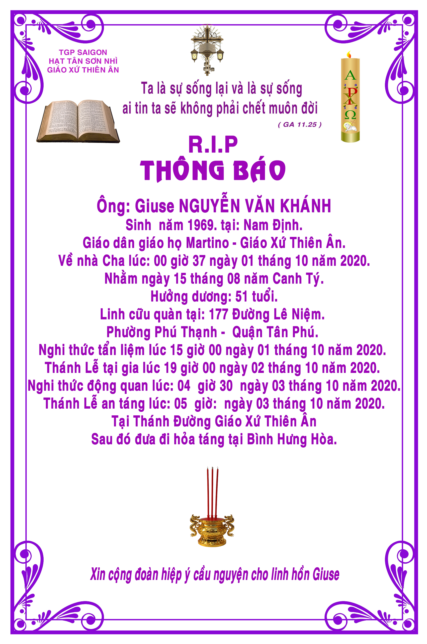 R.I.P – ÔNG GIUSE NGUYỄN VĂN KHÁNH GIÁO DÂN GIÁO HỌ MARTINO GX THIÊN ÂN