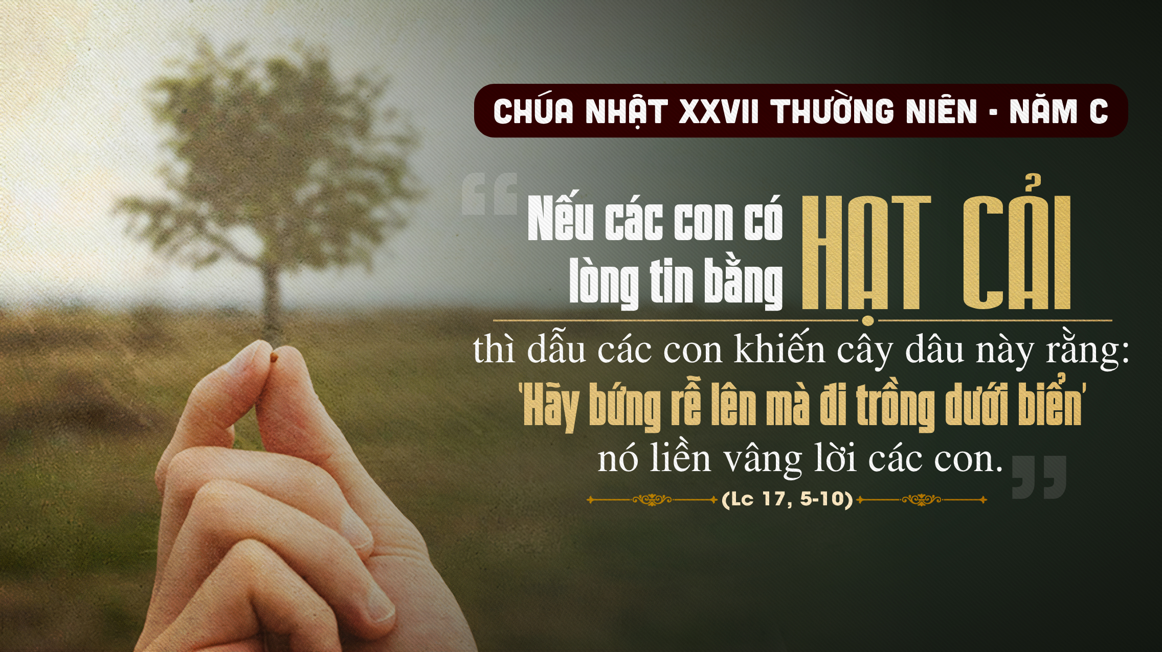 5 Khi ấy, các Tông Đồ thưa với Chúa Giê-su rằng : “Thưa Thầy, xin thêm lòng tin cho chúng con.” 6 Chúa đáp : “Nếu anh em có lòng tin lớn bằng hạt cải, thì dù anh em có bảo cây dâu này : ‘Hãy bật rễ lên, xuống dưới biển kia mà mọc’, nó cũng sẽ vâng lời anh em.