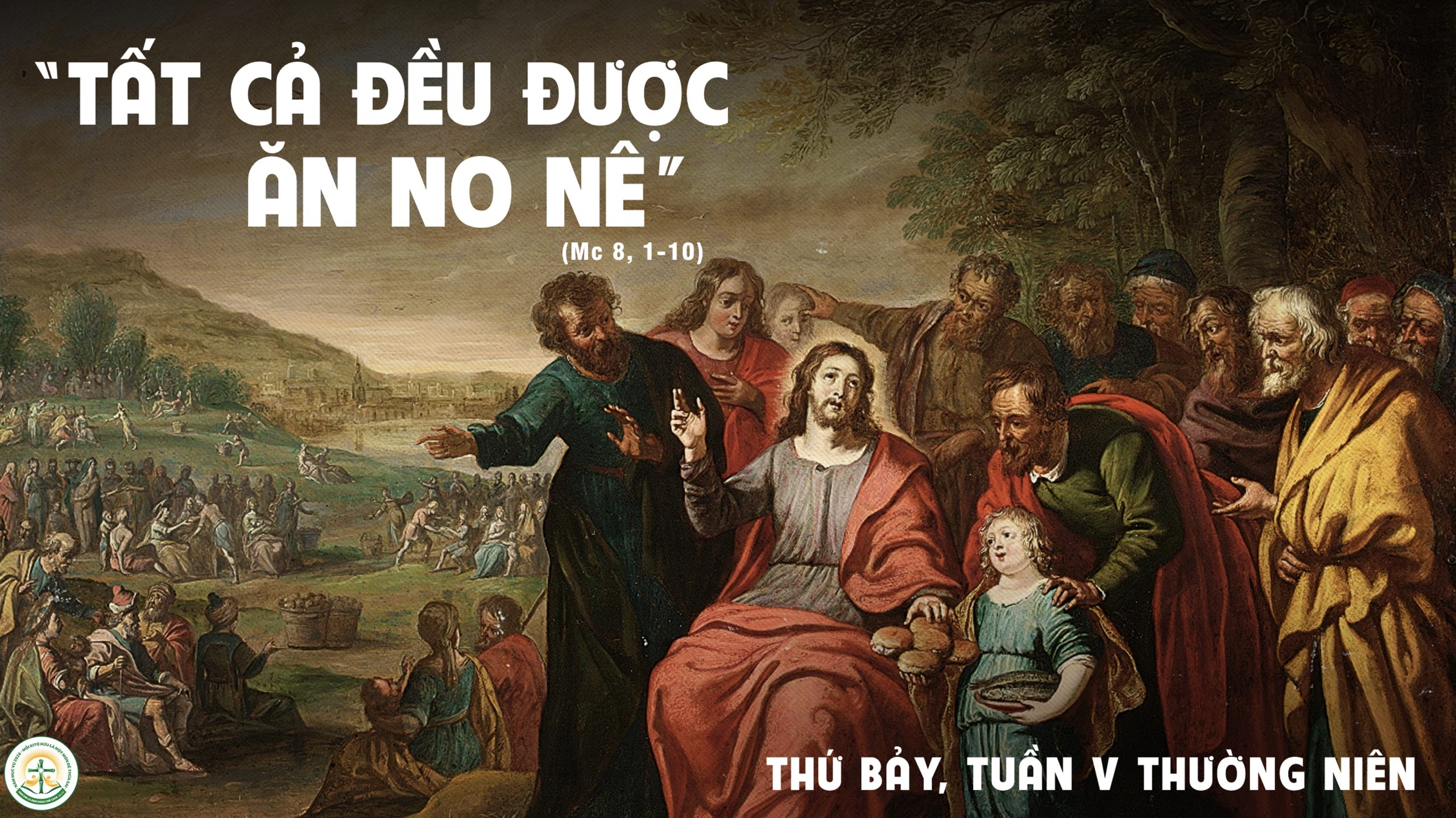 1 Trong những ngày ấy, có rất đông dân chúng, và họ không có gì ăn, nên Đức Giê-su gọi các môn đệ lại mà nói : 2 “Thầy chạnh lòng thương dân chúng, vì họ ở luôn với Thầy đã ba ngày rồi mà không có gì ăn ! 3 Nếu Thầy giải tán, để họ nhịn đói mà về nhà, thì họ sẽ bị xỉu dọc đường. Trong số đó, lại có những người ở xa đến.” 4 Các môn đệ thưa Người : “Ở đây, trong nơi hoang vắng này, lấy đâu ra bánh cho họ ăn no ?” 5 Người hỏi các ông : “Anh em có mấy chiếc bánh ?” Các ông đáp : “Thưa có bảy chiếc.” 6 Người truyền cho họ ngồi xuống đất. Rồi Người cầm lấy bảy chiếc bánh, dâng lời tạ ơn, và bẻ ra, trao cho các môn đệ để các ông dọn ra. Và các ông đã dọn ra cho dân chúng. 7 Các ông cũng có mấy con cá nhỏ. Người đọc lời chúc tụng, rồi bảo các ông dọn luôn cá nữa. 8 Dân chúng đã ăn và được no nê. Người ta nhặt lấy những mẩu bánh còn thừa : bảy giỏ ! 9 Số người ăn độ chừng bốn ngàn người. Người giải tán họ. 10 Lập tức, Đức Giê-su xuống thuyền với các môn đệ và đến miền Đan-ma-nu-tha.